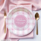 Wedding Party Paper Plates Pink Plaid Custom Name