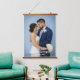 Create a custom hanging tapestry blanket to celebrate your wedding photo. overlays your photo in a stylish white script with swashes. Add your name in simple white typography.