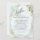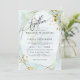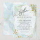 WEDDING INVITATION | Hand painted jaspé in pastel shades of pale dusty blue and accented with hints of light sage green - accented with gold nuggets at the corners and a crystal style frame in gold with a sheer white center highlighting the invitation text. Handwritten script calligraphy text on the diagonal "together" at the top allows a warm personal appeal - easy to personalize template.