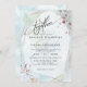 WEDDING INVITATION | Hand painted jaspé in pastel shades of pale dusty blue and accented with hints of light sage green - accented with rose gold nuggets at the corners and a crystal style frame in rose gold with a sheer white center highlighting the invitation text. Handwritten script calligraphy text on the diagonal "together" at the top allows a warm personal appeal - easy to personalize template.
