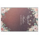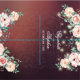 Wedding Photo Booth Backdrop Templates - Elegant Script, Watercolor Floral Peach White Roses and String Lights on Burgundy Red Damask Background.