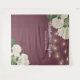 Wedding Photo Booth Backdrop Templates - Elegant White lovely Watercolor Hydrangea Flowers and String Lights on Burgundy Red Background.