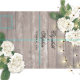 Wedding Photo Booth Backdrop Templates - Elegant White lovely Watercolor Hydrangea Flowers and String Lights on Rustic Wood Background.