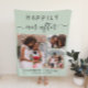 Sage green wedding photo collage blanket for the perfect keepsake of your special day. "Happily Ever After" is written across the top in a mix of simple typography and a stylish script with swashes. Personalize with three photos, your first names and your wedding date.