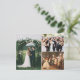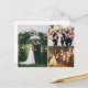 Beautiful wedding thank you card featuring three of your favorite wedding celebration photos. A budget friendly way to say thank you and share the happiness of your big day with your friends and family. The front side of this card has a collage with white script "thank you" design - upload with one vertical and two horizontal photos of your wedding day. The backside of these custom photo wedding thank you postcards can be printed with your return address with room for your handwritten message.