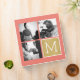 Coral and gold print background - Use 3 square photos to create a unique and personal anniversary gift. Add the bride and groom's initials. If you need to adjust the pictures or monograms, click on the customize tool to make changes.