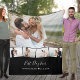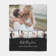 Wedding photo collage blanket with personalized text and zigzag picture strip. The template is set up ready for you to add five photos - the main photo will be used as the background and the remaining 4 photos will be laid out in a zigzag picture strip along the bottom. This design has a black background, fine black photo frames and elegant white typography.