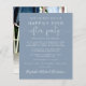 Affordable dusty blue save the date announcement for a reception or party to celebrate your elopement or private wedding. The front features "Save the Date For Our Happily Ever After Party" in a mix of simple white typography and an elegant white script with swashes, your customized wedding announcement, party or reception save the date details and your names in a signature-like script. The back features your favorite wedding photo, first names and wedding and reception dates.