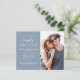 Budget-friendly dusty blue wedding save the date announcement featuring your photo and "Happily Ever After" in a mix of simple modern white typography and a stylish white script with swashes. Personalize your save the date details and add your names in a signature-like script. Your names and wedding date are joined together by a heart on the back.