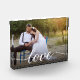 The centerpiece of this photo frame is the word "Love" beautifully written in a modern and elegant script. The stylish design adds a touch of sophistication and romance to your wedding photo, showcasing the love that blossomed on your special day.