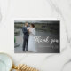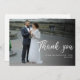 Wedding thank you script font card features the words 'thank you' in white over a full bleed photo, a stylish and minimal design. This card is ready for you to customize with your own photos and message to thank your guests for being a part of your wedding day. Part of an ever-growing collection, please browse the Wedding Thank You Card Suite for more designs.