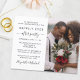 Budget-friendly modern elopement or small wedding announcement and reception invitation featuring your photo and "Happily Ever After Party" in a mix of simple typography and a stylish script with swashes. Personalize your party or reception details and add your names in a signature-like script. This budget semi-gloss paper is similar in weight to photo paper. A larger 5x7 traditional card stock version is also available (message us for the link).