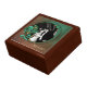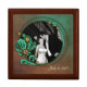 Elegant wooden box, with graphic tile lid. Lovely graphics of a mottled brown and green background, with a circular photo area, decorated with flowers. Custom text, at the bottom, is ready to personalize to read anything you want. Add your own wedding photograph and text to make this a special keepsake from your wedding, makes a great gift idea too.