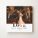 Showcase your special day from your wedding in this elegant, simple, design with typography of the word LOVE and customizable names written in a beautiful script font. Perfect for a wedding gift for the bride and groom. A beautiful keepsake for a newly married couple.