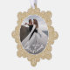 Wedding Photo on Gold Swirl Christmas Ornament Card