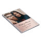 On the front: A rose gold background decorated with faux silver glitter dust. Personalize and add your own photo, names and the wedding date.