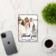 Express your heartfelt gratitude in style with our Wedding Photo Script Thank You Foil Card, designed to showcase your favorite wedding moments. Featuring real gold foil script on the front, this elegant card highlights your cherished wedding photo on both the front and back. Personalize it easily with your own custom thank you message and a second photo on the back for a memorable touch.