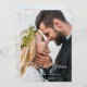 On front: add your own wedding photo, portrait/vertical size. With the text: Thank You written with large modern, handlettered style script. Templates for your names and wedding date. White text.