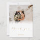 Share elegant appreciation with this modern wedding thank you card, featuring a refined gold effect "thank you" script and a beautiful faded white gradient for a soft, romantic touch. Highlight your special day by adding a favorite wedding photo alongside bold, clean text and space for bride and groom names. With customizable message and color options, this card creates a timeless keepsake, making it easy to express heartfelt gratitude to everyone who celebrated with you.
