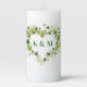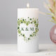 This wedding pillar candle is shown in a lovely heart shape botanical print.