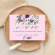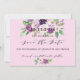 A modern and elegant Save the Date for a wedding. Pink background. Decorated with purple flowers. Personalize and add a date and names. The text: Save the Date is written with a large trendy hand lettered style script.