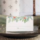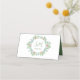 Christmas Place Card or Escort Card design features a top boarder of watercolor greenery and berries. Space provided for guest name and table number. Cards reverse to reveal a matching watercolor green leaves and berries with your initials and wedding date on the back. The inside features a matching green color. Designed to match VG Invites watercolor Christmas Collection. To see more visit www.zazzle.com/vginvites