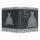 Black and White Wedding Planner Binder with stylized lacy wedding dress. Dress can be moved if needed. Customize with your own text. Original illustration by pj_design. This Wedding Binder features a highly stylized lacy wedding dress decorated with lovebirds, vines, and berries. The background has a black damask pattern. Great for organizing, scrap booking, photo's, or planning.