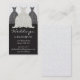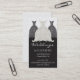 Black, White, and Platinum Wedding Planner Business Card with stylized lacy wedding gown and bridesmaid dresses. Room on the back for any additional information. Customize with your own text and paper choice. Original illustration by pj_design. These lacy wedding dresses are decorated with lovebirds, vines, and berries. The background has a pretty damask pattern. Great for a wedding planner, bridal consultant, dress maker, designer, or event planner.