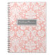 Spiral wedding planner journal with elegant peach orange pink, grey and white classic floral damask vintage pattern, with customizable text to add your own message. Perfect for organizing wedding plans and details, a great gift for the bride to be.