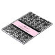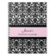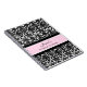 Spiral wedding planner journal with elegant light pink and black classic floral damask pattern, with customizable text to add your own name and message. Perfect for organizing wedding plans and details, a great gift for the bride to be.