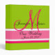 Wedding Planner Monogram Date & Names Pink Green 3 Ring Binder