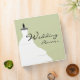 A wedding planner binder featuring an illustration of a wedding dress on a dress form covering portions of the front, back, and spine. Front text reads "Wedding Planner" Spine reads "The Future Mrs." Personalize with name. Look for matching bridal shower invitations and more at Jill's Paperie. Background color is customizable.