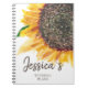 Custom wedding plans spiral notebook with yellow and brown watercolor sunflower on white. Personalized with the bride's name or any text you choose. Contact us for help with customization or matching products.