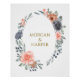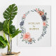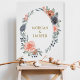 Bring a refined and cohesive look to your reception tables with this elegant wedding table number card, featuring a delicate wreath of soft peach florals, muted blue blooms, and airy greenery. The graceful oval design frames each table number beautifully, while the coordinating layout option with guest names adds a polished and organized touch.