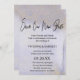 Elegant Save Our New Date card to let friends and family know you have postponed your wedding. 'A soft purple and blue watercolor wash as gold glitter accents. Save Our New Date is written across the top in a modern and trendy font.