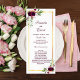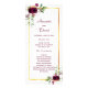 An elegant and bohemian, boho style wedding program. Watercolored feathers, roses, flowers in burgundy. Templates for your names, dates, details of the ceremony and the party. A faux gold frame and a chic white background, burgundy colored letters.