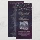 Wedding Program Rack Cards Templates - Elegant Mason Jar & Vintage String Lights on Purple Sparkle Bokeh Lights Background.