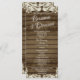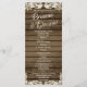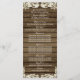 Rustic country barn romance design wedding program with dark barn wood and lacy vintage floral in antique white with customizable text. Mass on one side with bridal party names on the other side. Compliments our Elegant Country Barn Romance Wedding invitation set.