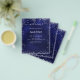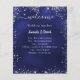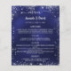 A classic wedding program and menu. A navy blue background. The blue color is uneven. White text. Decorated with faux silver glitter, sparkles. Personalize and add your name, date and both your program and the menu.