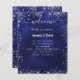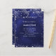 A classic wedding program and menu. A navy blue background. The blue color is uneven. White text. Decorated with faux silver glitter, sparkles. Personalize and add your name, date and both your program and the menu.