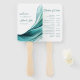 Introducing this unique Modern Wedding Event Timeline Fan, featuring a refreshing emerald green abstract design. These Programs will not only guide your guests through your wedding day, it's a unique keepsake of your celebration while keeping your guests cool. A detailed timeline ensures guests don't miss a moment, from the soulful ceremony to the lively dance floor. Make your wedding celebration unforgettable with these Modern Wedding Event Timeline Fans.