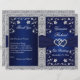 This romantic and dramatic navy blue and silver gray floral wedding program has a PRINTED RIBBON, a pair of PRINTED diamond and glitter joined jewel hearts on it, with silvery grey flowers and a FAUX silver foil border. It is meant to fold down the center. If you need any help customizing this with your own information, or if you have any requests, please email niteowlstudio@gmail.com. ***PLEASE NOTE that if you upgrade to the more expensive paper, that it is a light cardstock that does not fold well.