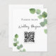 A chic white background. Decorated with watercolored eucalyptus greenrey, sprigs. Personalize and add your own QR code to your website with the wedding program.