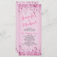 This charming and elegant program features subtle shades of pink and resembles rose petals. This invitation would look great for your wedding or event. It is fully customizable with your text, and, you can change the font and colors in order to make it truly yours. Note: Background is a graphic print of artwork and contains no messy glitter. Design by Amelia Carrie.