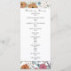 Modern wedding program with a colorful floral border of daisies, foliage and wild flowers in pinks, oranges and purple. All of the wording on this wedding program can be customized.