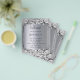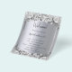 A modern, elegant, wedding program, timeline. Faux silver looking background, decorated with florals, flowers. Personalize and add your names and wedding details. Black colored letters. If you have more text it's possible to reduce the line space and also add text on the back.