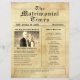 The Matrimonial Times, a fun novelty wedding program set out in a distressed vintage newspaper tabloid style which is easy to edit with your wedding details. It includes a list of who's who, order of the day, menu, list of people missed and a special thank you message. Don't forget to change the photo to one of yours which will automatically change to sepia colors