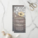 Wedding Program Rack Cards Templates - Vintage Lace, Sunflower and String Lights on Rustic Wood Background.