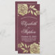 Wedding Program Rack Cards Templates - Modern Gorgeous Gold Foil Roses and Vintage Burgundy Red Background.