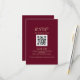 Elegant, modern, simple, contemporary, minimalist, gold and burgundy wedding RSVP card with QR code, website and unique hand drawn couple love birds drawing at the back.